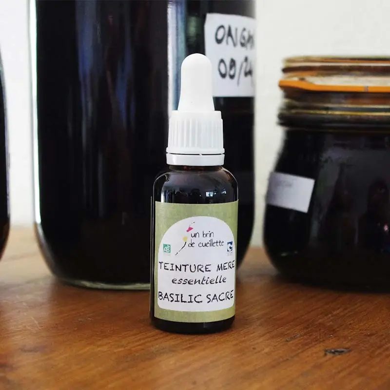 Complément alimentaire à base d’alcool bio et de plantes fraîches de Ocimum Sanctum.