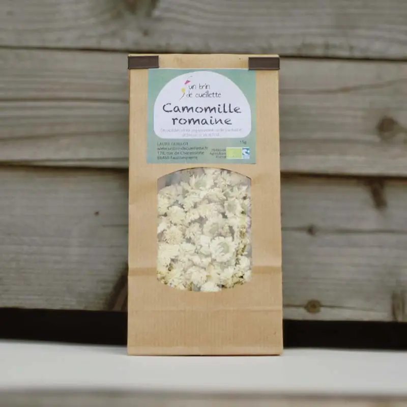 La camomille romaine a un goût plus doux que la grande camomille et plus prononcé que la camomille matricaire.