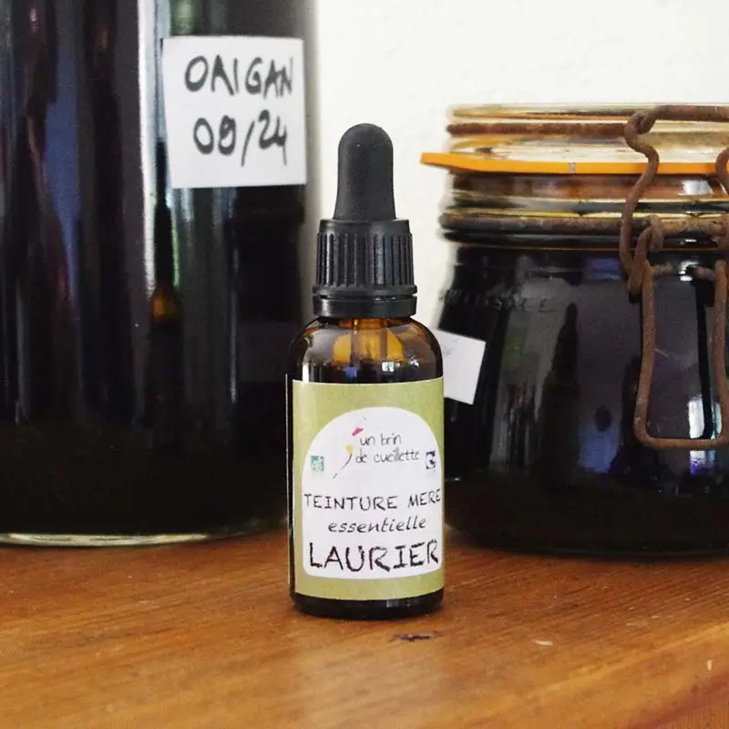 Complément alimentaire à base d’alcool bio et de plantes fraîches de Laurus nobilis.